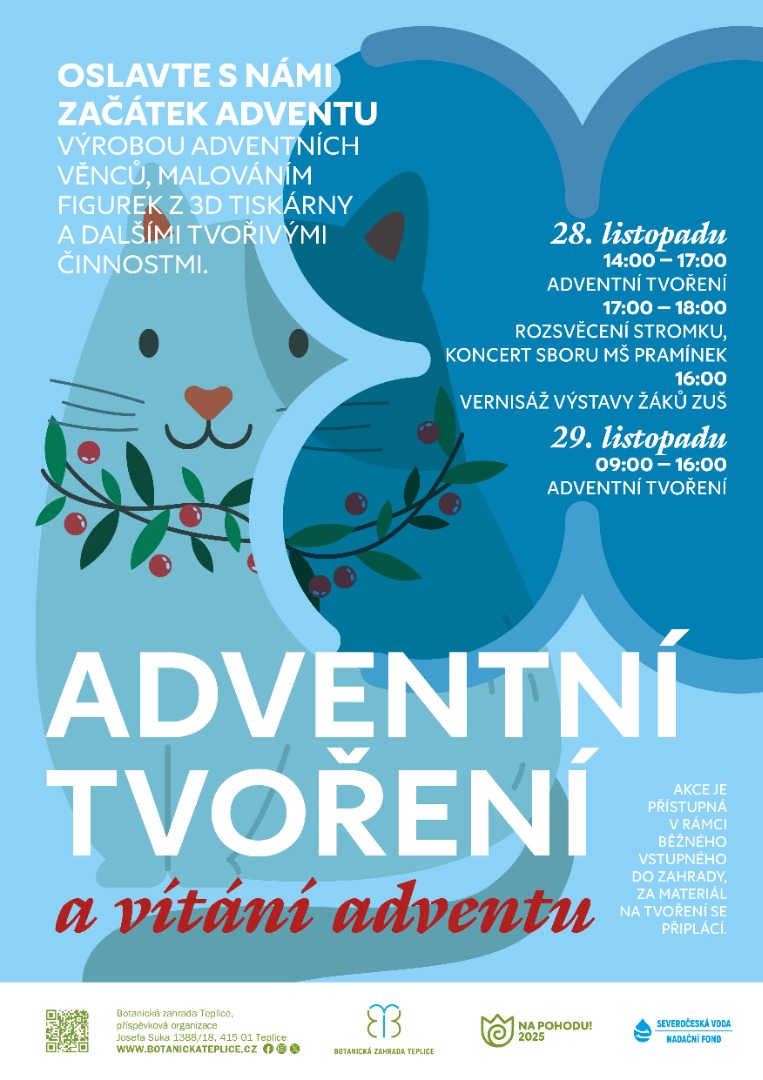 V pátek 28. listopadu nás čeká poslední tvoření za rok 2025 a jak už bývá zvykem, ponese se ve znamení adventu. To ale není všechno. V ten den zároveň očekávejte zahájení výstavy žáků Základní umělecké školy Teplice. A aby toho nebylo málo, též plánujeme koncert dětského sboru Mateřské školy Pramínek a slavnostní rozsvěcení stromku, kterým symbolicky zahájíme adventní čas.