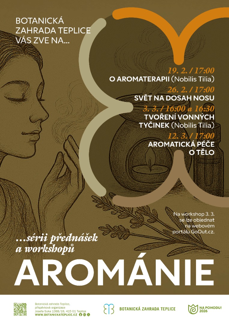 Zveme vás na jedinečný cyklus přednášek a praktických workshopů, které vás provedou už tak fascinujícím světem vůní, aromatických rostlin a jejich využitím v péči o tělo a samozřejmě i o duši. Při té příležitosti jsme započali spolupráci s renomovanou firmou Nobilis Tilia, která je špičkou v oblasti přírodní aromaterapie a kosmetiky. Na přednášky se nemusíte objednávat předem, můžete se rozhodnout třeba i na poslední chvíli, kapacita není omezená. Výjimkou je workshop 3. března zaměřený na výrobu vonných tyčinek. Pouze v tomto případě je třeba, objednat si lístky na webovém portálu GoOut.cz.