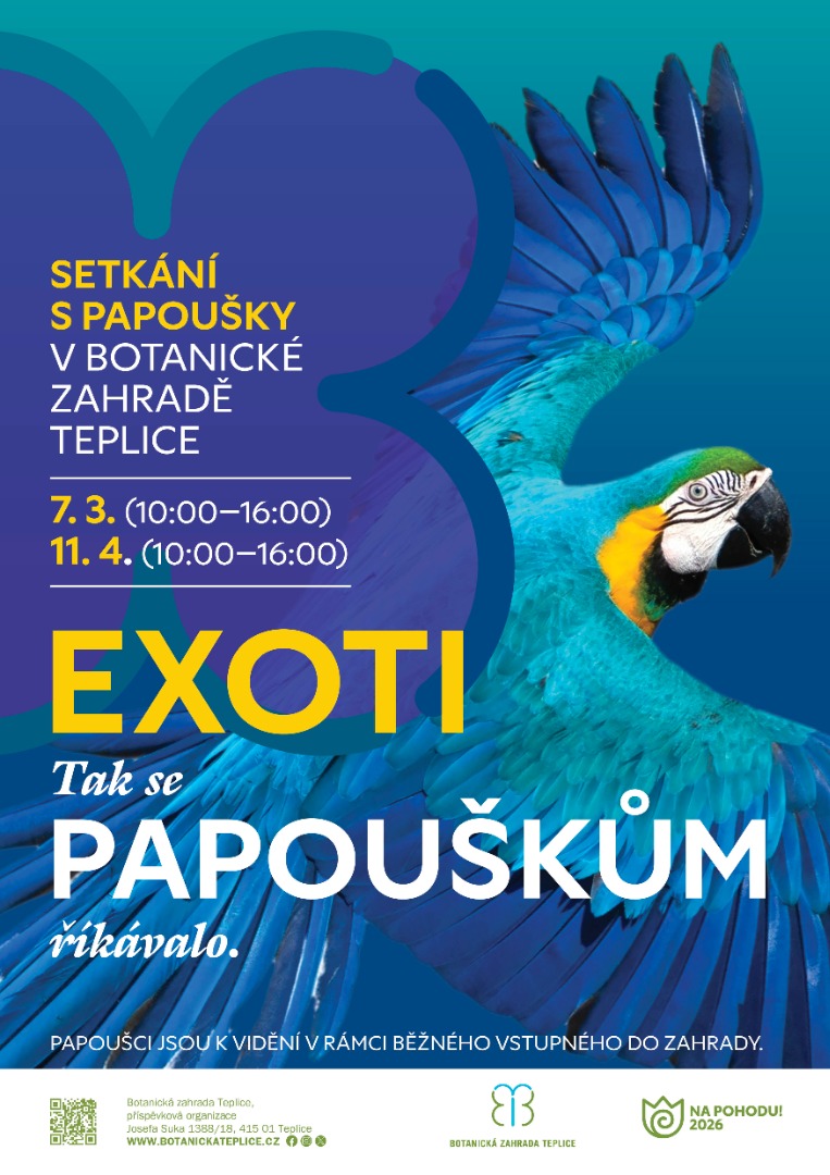 POZNÁMKA: Akce se koná v tropickém skleníku, kde bude vymezena část pro návštěvníky mající zájem o setkání s papoušky a trasa, kudy budou procházet ostatní návštěvníci. Setkání s papoušky je možné mezi 10:00 až 16:00, avšak vstup do zahrady od 15.00 je pouze pro prohlídku botanické zahrady.