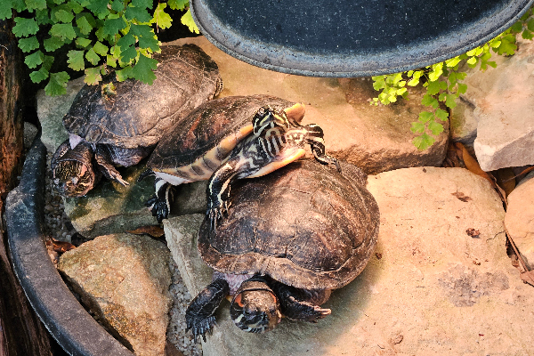 V zahradě naleznete zajímavé expozici plazů, která představuje různé druhy chovaných živočichů. Ve vstupní hale je terárium s madagaskarskými gekony Phelsuma, v tropickém skleníku žijí vodní želvy (včetně želvy nádherné a želvy Reevesovy), a ve venkovní části se můžeš setkat se suchozemskými želvami jako želva vroubená či želva zelenavá. Expozice doplňuje informace o jejich biologii, původu i zajímavostech chovu.