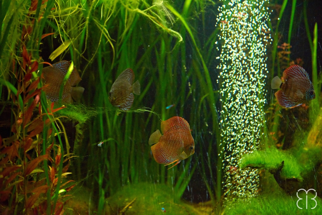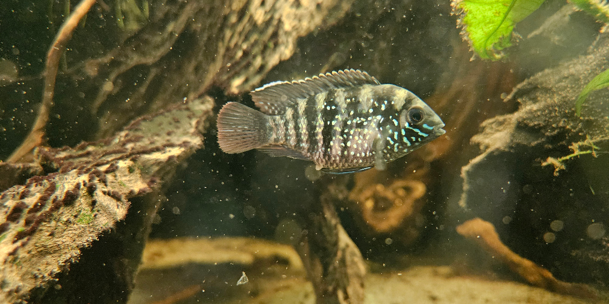 První akvárium je věnované středoamerickým cichlidám, které mají zajímavé sociální a reprodukční chování, zejména stojí za pozornost jejich rozvinutá rodičovská péče. Na rozdíl od většiny ostatních ryb, které po nakladení jiker často zanechají potomstvo napospas osudu, cichlidy je aktivně chrání a starají se o ně až do relativně pokročilého stadia. Tato péče může zahrnovat čištění jiker, obranu teritoria před vetřelci nebo přemisťování potěru do bezpečných zákoutí akvária.