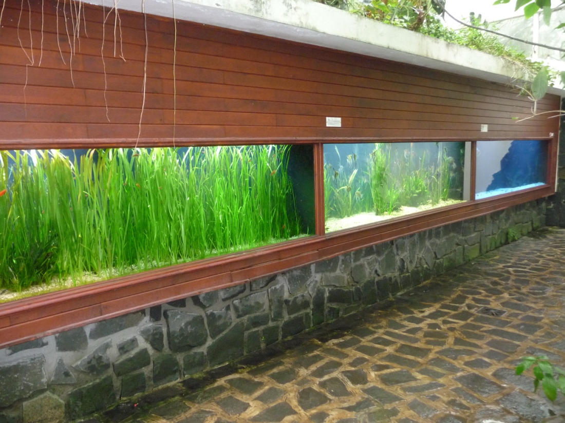 Po otevření skleníků byla trojice akvárií osázena následovně: akvárium s tetrami, „černá Amazonie“ obydlená skalárami, a poslední akvárium s rejnoky a jedním jedincem arowany dvojvousé (Osteoglossum bicirrhosum). Vzhledem k prostorovým podmínkám se však arowana odstěhovala do Botanické zahrady hl. m. Prahy.