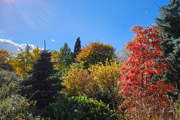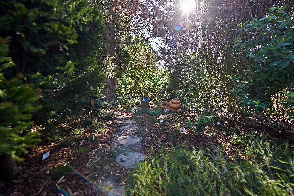 Důležitou součástí celé venkovní expozice jsou dřeviny, které vytvářejí hlavní kostru a dominantu. Nejvíce dřevin je soustředěno v zadní části venkovní expozice, kam vás zavedou jednotlivé stezky. Návštěvníci mohou obdivovat dva více jak stoleté exempláře druhu nahovětvec dvoudomý (Gymnocladus dioica). Svým podzimním zbarvením zaujme jinan dvoulaločný (Gingko biloba), javor dlanitolistý (Acer palmatum) nebo metasekvoje čínská (Metasequoia glyptostroboides). A to není rozhodně všechno, protože na venkovní ploše je více jak 500 různých taxonů dřevin.