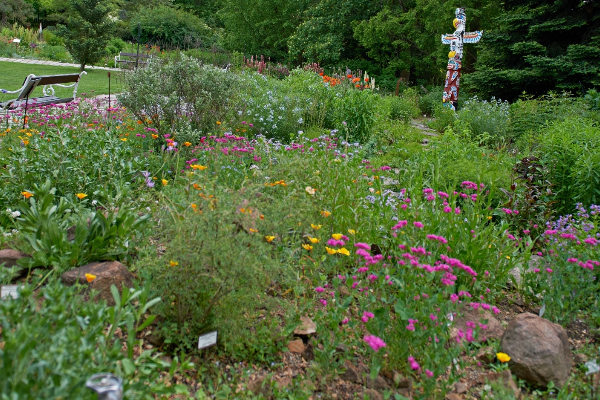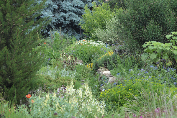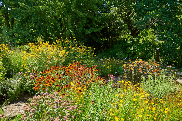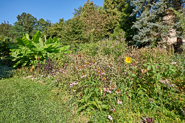 Mnoho oblíbených zahradních trvalek pochází z oblastí Severní Ameriky a tak je velká část expozice věnována právě rostlinám pocházející z USA a Kanady. Velká část těchto rostlin pochází z prérijních společenstev ze střední a západní oblasti Severní Ameriky, některé rostliny rostou na úbočích Skalistých hor či Appalačského pohoří. V expozici se představují rody jako dračík (Penstemon), kokarda (Gaillardia), krásnoočko (Coreopsis), phlox (Phlox), třapatky (Echinacea) či rudbekie (Rudbeckia). Ve stínu lesa roste mnoho zajímavých bylin a právě jim je věnována zadní partie záhonu s rody jako dlužicha (Heuchera), božskokvět (Primula, syn. Dodecatheon) nebo samorostlík (Actaea).