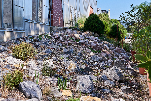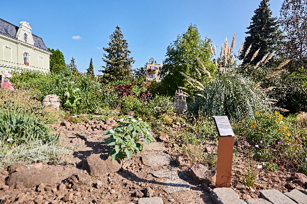 Skalka z čediče zasvěcená Českému středohoří byla vybudována na pomezí let 2023–2024, přičemž první výsadby byly provedeny v roce 2024. Představuje zejména atraktivní a ohrožené druhy lounského středohoří. Skalka slouží jako sbírka rostlin reprezentující nejbližší významnou chráněnou krajinou oblast u Teplic a zároveň jako uchovávání genofondu ohrožených druhů rostlin. Na jaře žlutě svítí tařice skalní (Aurinia saxatilis), fialově hvězdnice alpská (Aster alpinus) a pokračuje to nádherným aspektem fialové divizny brunátné (Verbascum phoeniceum) či modrého lnu rakouského (Linum austriacum).